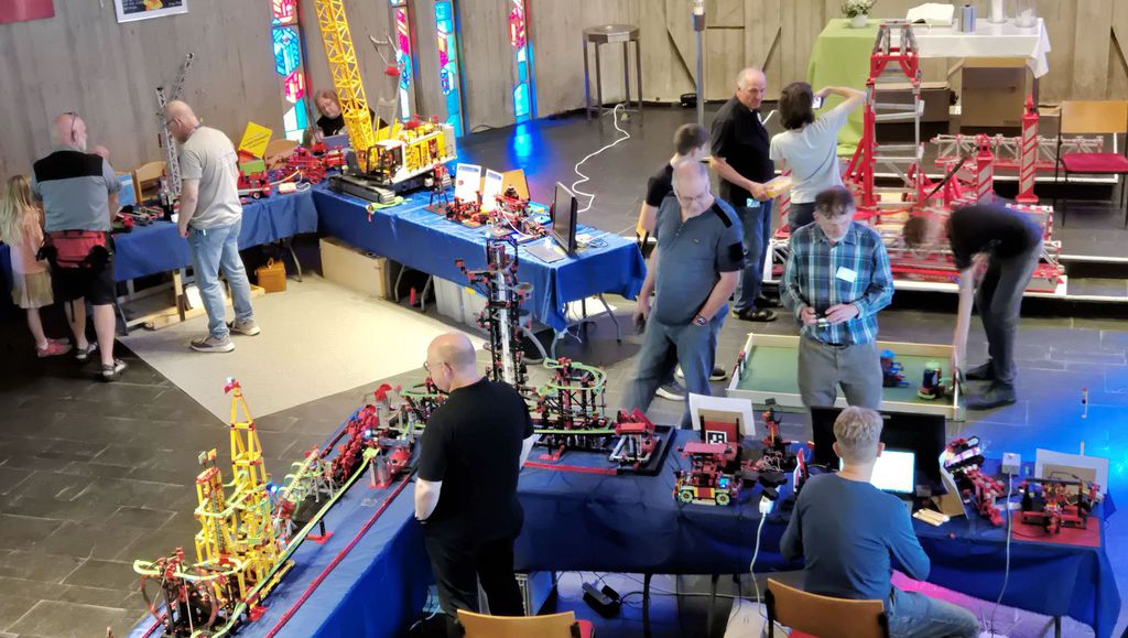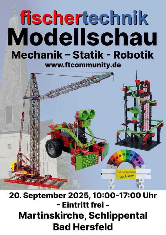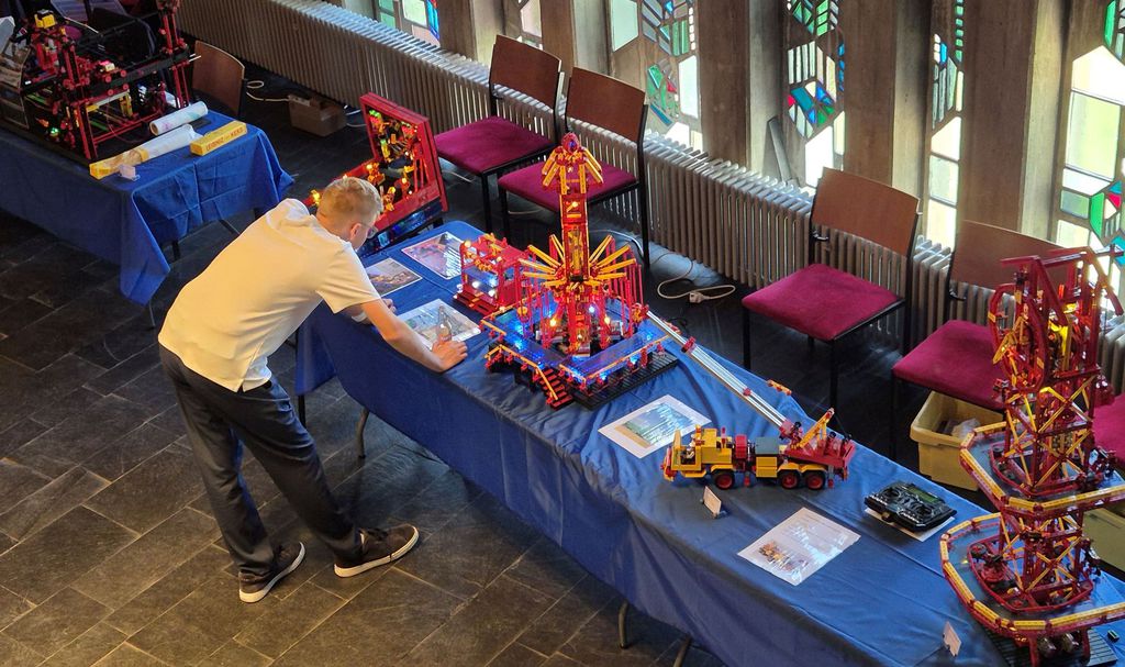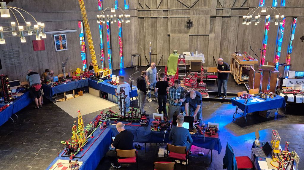 Der Fischertechnik- Modellbauverein traf sich in der Martinskirche zu einer Modellbau-Convention unter dem Titel " Mechanik-Statik-Roboter". 27 Aussteller aus Deutschland, den Niederlanden und Österreich waren angereist, um ihre Modelle zu präsentieren und sich auszutauschen. Ein Highlight war der vier Meter hohe Raupenkran im Kircheninnern. In der Regel hätte es jedes Jahr zwei solcher Veranstaltungen gegeben, erzählte Vereinsmitglied Peter Habermehl aus Bad Hersfeld, doch bisher hätte es mit einem so ein großen Treffen nicht geklappt. Deshalb freuten sich die Veranstalter über die Möglichkeit, in Hersfeld "gut erreichbar" den Raum dafür zu bekommen. Habermehl und Pfarrer Ingo Schäfer, die zusammen die Ausstellung organisiert hatten, freuten sich, dass die Versanstaltung sowohl von den Ausstellern als auch vom Publikum gut angenommen wurde. Spielen war ausdrücklich erwünscht, stand auf vielen Plakaten zu lesen. Nicht nur Kinder, sondern auch die Erwachsenen nahmen neugierig und spielfreudig die Einladung an, um die Modelle auszuprobieren. Für Essen und Getränke war reichhaltig gesorgt. Bis in den Nachmittag hinein genossen viele Besucher das Angebot. (het)