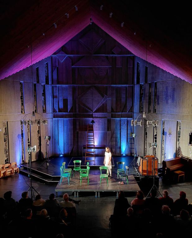„Ich möchte den Himmel sehen“, „einmal wieder laut lachen“, „ausgelassen sein“ und „ich möchte leben.“ All diese Wünsche schrieb das jüdische Mädchen Anne Frank in den Jahren 1943 und 1944 sehnsüchtig in ihr Tagebuch. Die österreichische Schauspielerin Maddalena Hirschal nahm in zwei Vorstellungen am Wochenende in der Martinskirche das Publikum mit einer besonders eindringlichen Performance in die Gedanken- und Gefühlswelt von Anne Frank mit. Regisseur Holk Freytag hatte mit ihr die Solofassung von „Anne Franks Tagebuch“ entwickelt, die bereits vor 12 Jahren im Rahmen der Festspiele in der Martinskirche gezeigt wurde. Holk Freytag beschrieb das Tagebuch zu Beginn als ein Zeugnis einer außerordentlichen schriftlichen Begabung. Intime Gedanken und Selbstreflexionen sowie die Schilderung gesellschaftlicher und politischer Zustände machten es zu einem erschütternden Zeitzeugnis. Seine Fassung handele von Freiheit und Gefangenschaft, über Alter und Jugend sowie über Hass und Liebe. Acht einfache Holzstühle standen in den Aufführungen vor dem Altar. Sie symbolisierten die acht Menschen, unter anderem Anne Frank und ihre Familie, die sich in einem Amsterdamer Hinterhaus zwei Jahre lang dank mutiger Helfer und Helferinnen vor dem Nazi-Regime versteckt halten konnten. Eine Leiter stand noch an der hinteren Kirchenwand, sonst brauchte es keine Requisiten. Das intensive Spiel Hirschals sprach für sich. Die grazile Ausstrahlung der 42-Jährigen ließ das jugendliche Mädchen hervorragend vor den Augen des Publikums lebendig werden. Immer wieder erklang das melancholische Lied „Somewhere over the rainbow“, das Anne Frank sehr gemocht hatte. Die Sehnsucht nach einem besseren Ort, nach Frieden und Freiheit passte perfekt zu Annes innerer Welt. „Ich habe Lust zu schreiben und mir alles von der Seele zu reden“, schrieb sie in ihr Buch, denn sie habe sonst keine Freundin. Sie beschrieb ihr Aussehen, was sie hatte und nicht hatte, sie zählte auf, was Juden auf einmal alles nicht mehr machen durften, und sie schilderte die Situation, wie ihre Familie mit dem Nötigsten und in mehrere Kleidungsschichten gehüllt das Versteck bezog. „Ich sehe uns Acht im Hinterhaus, als wären wir ein Stück blauer Himmel, umringt von schwarzen Regenwolken, die immer näher rücken“, schrieb Anne. Hirschal hatte Tränen in den Augen, wenn sie die wütende oder traurige Anne spielte. Ihre Darbietung berührte das Publikum tief. Am Ende zog sie sich ihren Mantel über und verließ das Kircheninnere. Sie wurden verraten und entdeckt. Holk Freytag verlas die Schicksale der acht Versteckbewohner. Nur Otto Frank, Annes Vater, überlebte. Minutenlanges Schweigen folgte. Applaus war erst einmal nicht möglich, doch er folgte sogleich nach Hirschals Rückkehr vors Publikum. Es war eine verdiente Reaktion für eine starke Leistung. (het)