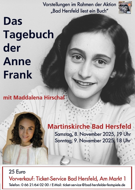 Maddalena Hirschal spielte im Rahmen der Leseaktion "Bad Hersfeld liest ein Buch" in einer bewegenden Inszenierung Anne Frank in der Martinskirche (8.11.2025)
