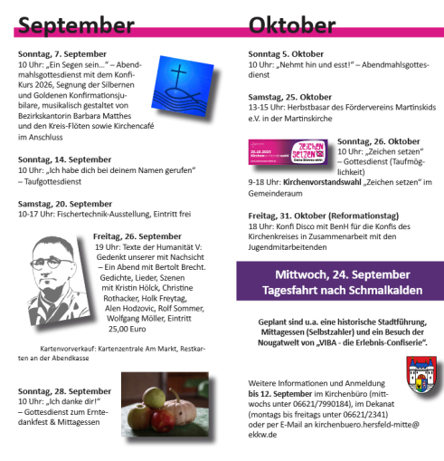 Hier finden Sie besondere Gottesdienste und Veranstaltungen im Kooperationsraum Hersfeld-Mitte